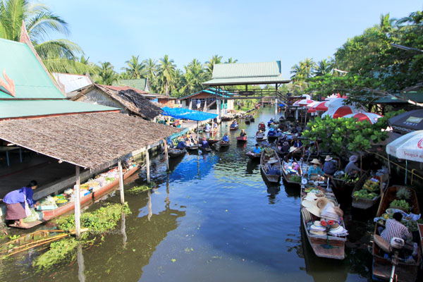 เยือนย่าน “ตลาดน้ำท่าคา” นั่งเรือพายชมสวน อบอวลความสุขสงบ