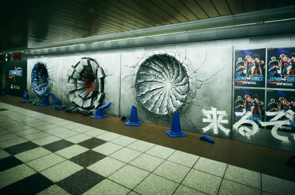 กำแพงในสถานีรถไฟใต้ดินชินจูกุ กลายเป็นรอยพังจากฝีมือของ ลูฟี่ นารูโตะ และโกคู!!