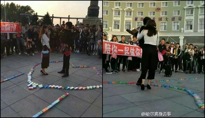 รักแท้อยู่รอบตัว หนุ่มจีนนำถุงยาง 999 กล่อง มาวางล้อมรอบเป็นรูปหัวใจก่อนลั่นวาจาขอสาวแต่งงาน