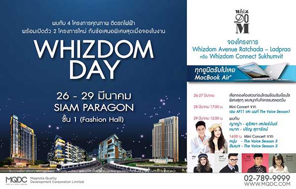 งาน "Whisdom day" แนะนำ 4 โครงการ ติดรถไฟฟ้า เปิดตัว 2 โครงการใหม่