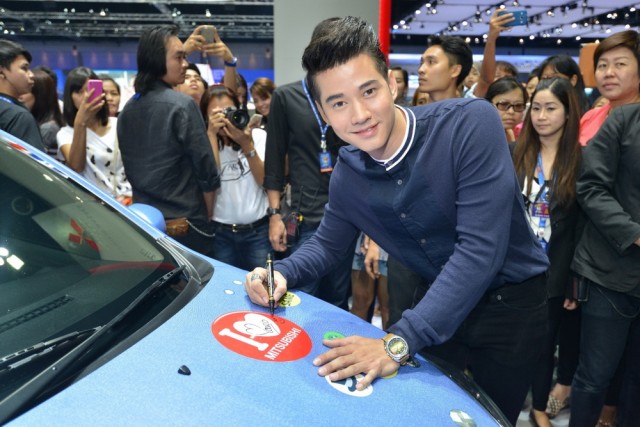 มิตซูบิชิชวนพรีเซ็นเตอร์ร่วมกิจกรรมในงานบางกอก อินเตอร์เนชั่นแนล มอเตอร์โชว์ปี 2558