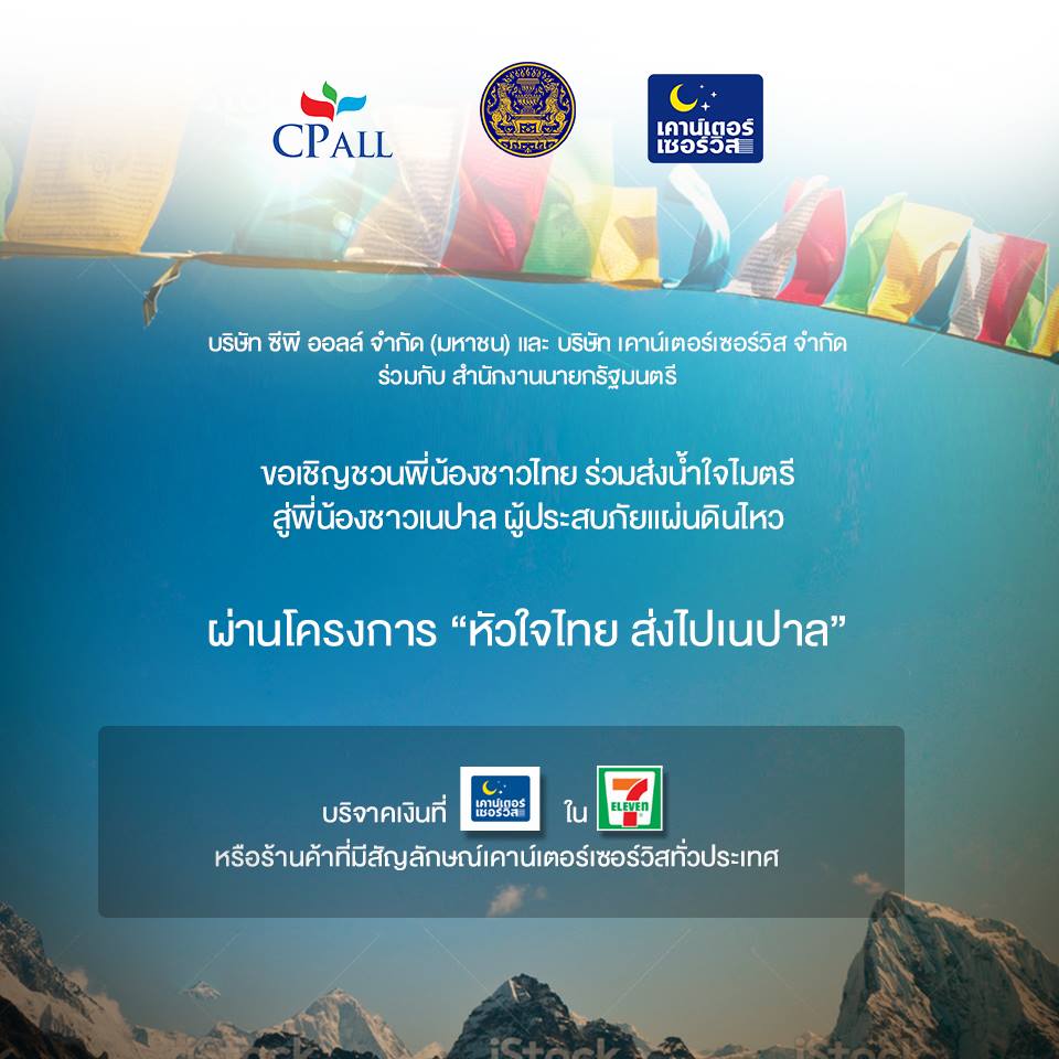 "หัวใจไทย ส่งไปเนปาล" สู่พี่น้องชาวเนปาล ผู้ประสบภัยแผ่นดินไหว