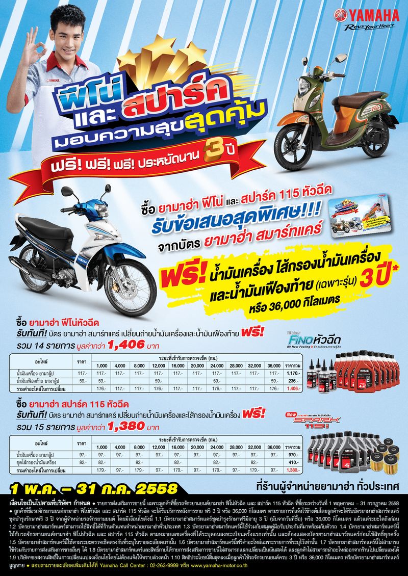 บิดยามาฮ่า คุ้มสุดคุ้ม ประหยัดนาน 3 ปี กับแคมเปญ "ฟีโน่ และ สปาร์ค...มอบความสุขสุดคุ้ม"