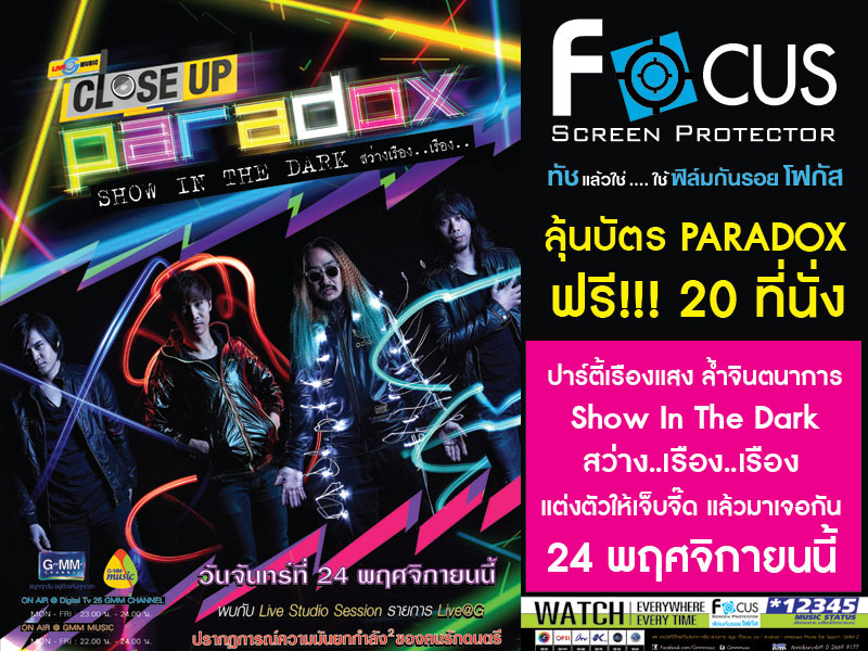 Focus แจกบัตรฟรียกก๊วน!! ชวนกันไปมันส์กับ Paradox Show in The Dark สว่าง..เรือง..เรือง