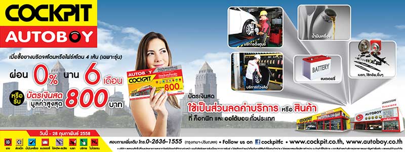 ค็อกพิท และ ออโต้บอย จัดโปรโมชั่นพิเศษ ผ่อน 0 % นาน 6 เดือน หรือ รับบัตรเงินสด มูลค่าสูงสุด 800 บาท