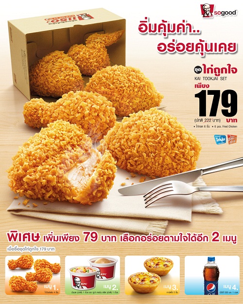 KFC จัดโปรโมชั่นพิเศษ ซื้อไก่ทอด 6 ชิ้น เพียง 179 บาท พิเศษ!! เพียงเลือกจับคู่ 2 เมนู