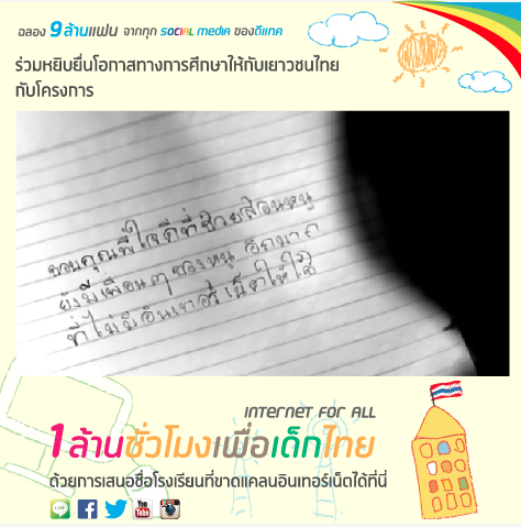 ร่วมหยิบยื่นโอกาสทางการศึกษาให้กับเยาวชนไทยกับโครงการ “1 ล้านชั่วโมงเพื่อเด็กไทย-Internet For All ”