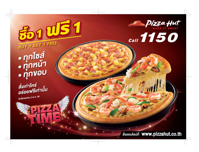 พิซซ่า ฮัท ให้คุณสนุกเต็มอิ่มกับช่วงเวลาพิเศษของพิซซ่า... กับพิซซ่าฮัทซื้อ 1 ฟรี 1!!!