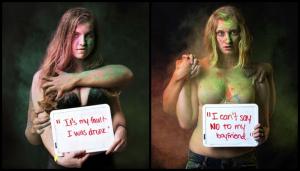 ผลงานภาพถ่ายเสียดสีการถูกข่มขื่น ด้วยคำพูดที่แทงใจและประชดประชันได้อย่างตรงจุด