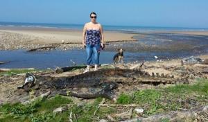 พวกเขาพาหมามาเดินเล่นที่ชายหาด แต่กลับสังเกตเห็น"ซากสัตว์ทะเลลึกลับ"ยาวกว่า 11 ฟุตที่ชายฝั่ง