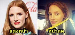 ภาพเปรียบเทียบของดาราสาวชื่อดังตอนแต่งหน้า