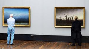 ช่างภาพรอถ่ายภาพคนเข้าชมงานศิลปะในพิพิธภัณฑ์