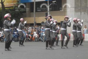 พลิ้ว! ตร.จราจรหญิงโชว์เต้นแยกราชประสงค์ รณรงค์ลดอุบัติเหตุช่วงสงกรานต์ (ชมคลิป+ภาพชุด)