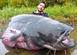 สองหนุ่มฝรั่งเศสตะลึงจับ"ปลาดุกเวลส์"ขนาดยักษ์ได้มากถึง
