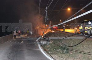 รถบรรทุกซิ่งชนเสาไฟฟ้าหักเพลิงลุก-เตือนเลี่ยง