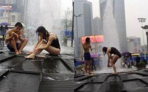 น้ำหอไม่ไหล!? คู่รักชาวจีนอาบน้ำกลางน้ำพุสาธารณะ