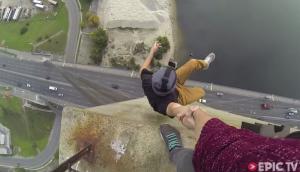 คลิปสุดเสียว หนุ่มปีนสะพานมอสโกว์บริดจ์ ที่ยูเครน แถมตีลังกาโชว์
