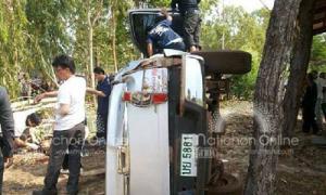 หนุ่มซิ่งกระบะกลับจากฉลองจับได้ใบดำ เสียหลักพลิกคว่ำชนต้นไม้ เมีย-ลูก 4 เดือนกระเด็นออกนอก