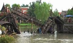 สะพานตลาดน้ำอโยธาถล่ม นักท่องเที่ยวตกน้ำจ๋อม