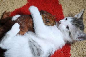 แมวเลี้ยงลูกกระรอก น่ารักดี