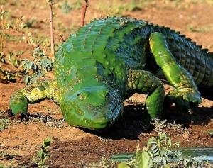 ฮือฮา!? พบจระเข้สีเขียวในแอฟริกาใต้ ที่แท้เปื้อน"สาหร่าย"