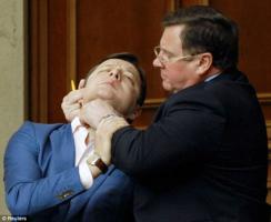 คลิปฉาว!! รองประธานสภาฯ ยูเครน บีบคอสมาชิก กลางสภา