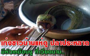 ชาวบ้านแห่ดู ปลาประหลาด มีหัวเหมือนงู ที่เวียดนาม