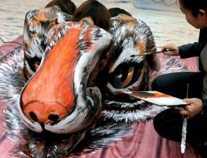 บอดี้เพนท์ 3D จับสาวๆมา บอดี้เพนท์ เป็นรูปหัวเสือ