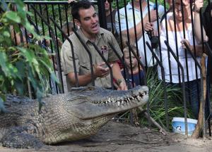 จระเข้น้ำเค็มงับมือพี่เลี้ยง