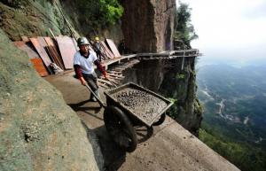 ไปชมภาพเบื้องหลังสุดอันตรายของการก่อสร้างเส้นทางเดินเขาในจีน!!