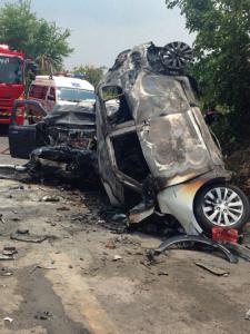 เก๋งป้ายแดงซิ่งชนกระบะปทุมฯ ไฟลุกท่วม คลอกดับ 4 ศพ