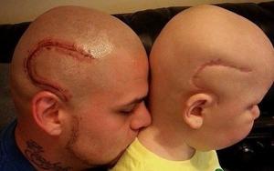 พ่อลงทุนสร้างรอยสักที่หัวให้เหมือนกับ"รอยแผลผ่าตัด"ของลูก เพื่อไม่ให้ลูกจะรู้สึกแปลกแยกและดูเหมือน"คู่แฝด"กัน