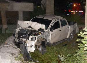 กระบะ 'พ.ต.ท.' สภ.สามโคก ชนแท่งปูน-กระเด็นตกถนน หัวเปิดอาการสาหัส