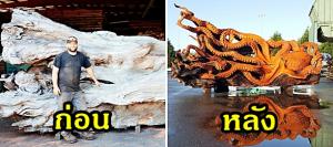 จากท่อนไม้ธรรมดาถูกศิลปินแกะสลักเปลี่ยนให้กลายเป็นประติมากรรมปลาหมึกยักษ์ที่น่าทึ่ง