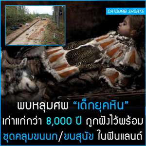 พบหลุมศพ "เด็กยุคหิน" เก่าแก่กว่า 8,000 ปี ถูกฝังไว้พร้อม ชุดคลุมขนนก/ขนสุนัข ในฟินแลนด์