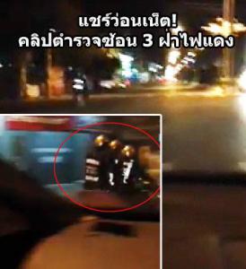 แชร์ว่อนเน็ต! คลิปตำรวจซ้อน 3 ฝ่าไฟแดง