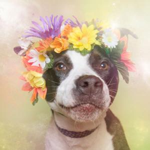 น้องหมาหน้าโหด พิทบูล กับมงกุฎดอกไม้ แสนหวาน