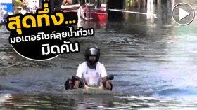 ทึ่ง มอเตอร์ไซค์วิ่งชิล ฝ่าน้ำท่วมที่จมมิดทั้งคัน