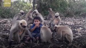 ความน่ารักของเด็กน้อยชาวอินเดีย ที่มีลูกน้องเป็นลิงทั้งฝูง!! เดินไปไหนก็ไปตาม