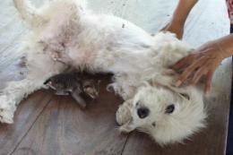 สุนัขลูกผสมพันธุ์พุดเดิ้ล เพศเมีย อายุ 12 ปี ชื่อข้าวปุ้น เลี้ยงดูลูกแมวเหมือนลูกของตน สร้างความแปลกใจให้กับชาวบ้านเป็นอย่างมาก