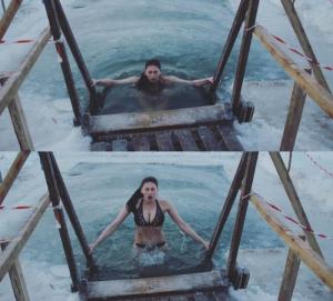 สาวรัสเซียใช้เวลาอาบน้ำในบิกินี่สำหรับพระเยซู