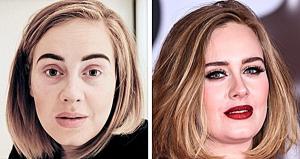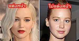 ภาพเปรียบเทียบของดาราสาวชื่อดังตอนแต่งหน้า