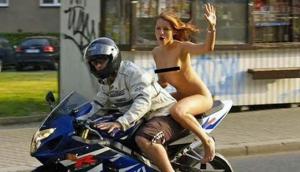 ชาวบ้านงง!! สาวเปลือยซ้อนรถ ตำรวจไม่จับแค่เตือนให้สวมหมวก