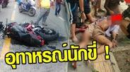 ชนสยอง ! อุทาหรณ์ขับรถ นาทีรถกระบะพุ่งชนมอเตอร์ไซค์ดับคาที่