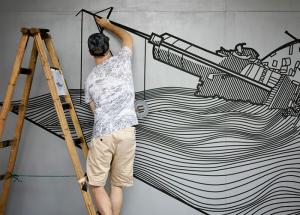 สตรีทอาร์ตสุดแนว!? แค่ใช้แผ่นเทปแปะกำแพง