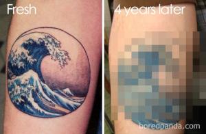นี่คือความเปลี่ยนแปลงของลายสักเมื่อเวลาผ่านไปนานหลายปี สีจางลงอย่างเห็นได้ชัด !