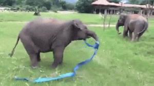 สนุกจังฮับ!! เมื่อช้างสัมผัสผ้าริบบิ้นเป็นครั้งแรก...เรื่องสุดฮาก็เกิดขึ้น