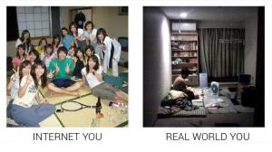ภาพเปรียบเทียบความแตกต่างระหว่าง "ตัวตนที่แท้จริง" และ "ตัวตนบนโลกอินเทอร์เน็ต" ของมนุษย์ในปัจจุบัน