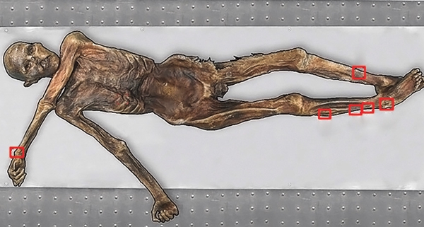 ร่างมัมมี่ของ "มนุษย์น้ำแข็ง" อายุกว่า 5,250 ปีที่ถูกค้นพบบริเวณเทือกเขาแอลป์ ประเทศอิตาลี และคาดว่ามีอายุมากกว่ามนุษย์โบราณจากอเมริกาใต้กว่า 500 ปีเลยทีเดียว