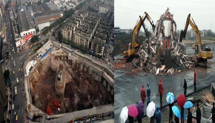 เรามักเห็นปัญหาเกี่ยวกับที่ดินในประเทศจีนเกิดขึ้นอยู่บ่อยครั้ง ด้วยความเจริญก้าวหน้าของบ้านเมือง ทำให้นายทุนต่างออกเงินคว้านซื้อบ้านเก่าแก่เพื่อแลกกับทรัพย์มหาศาล บางคนก็ขาย บางคนก็ไม่ยอมขาย อย่างเช่นเหตุการณ์นี้ เจ้าของบ้านไม่ยอมขายที่อยู่ดั้งเดิมเพื่อรับทรัพย์ก้อนใหญ่ ทำให้ต้องพบกับความยากลำบากแบบนี้ เพราะพื้นที่โดยรอบเป็นของนายทุนหมดแล้ว